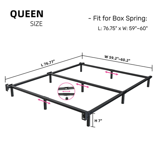 QFTIME Adjustable Low Profile Metal Bed Frame, Bed Base for Box Spring, Black, Queen